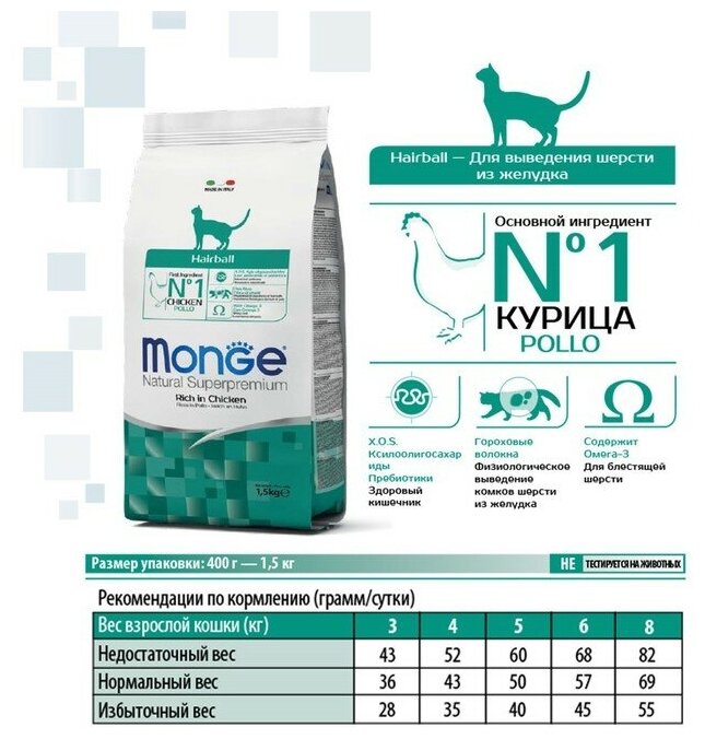 Monge Cat Daily Line Hairball корм для взрослых кошек, для выведения шерсти, из курицы 10 кг интересное: