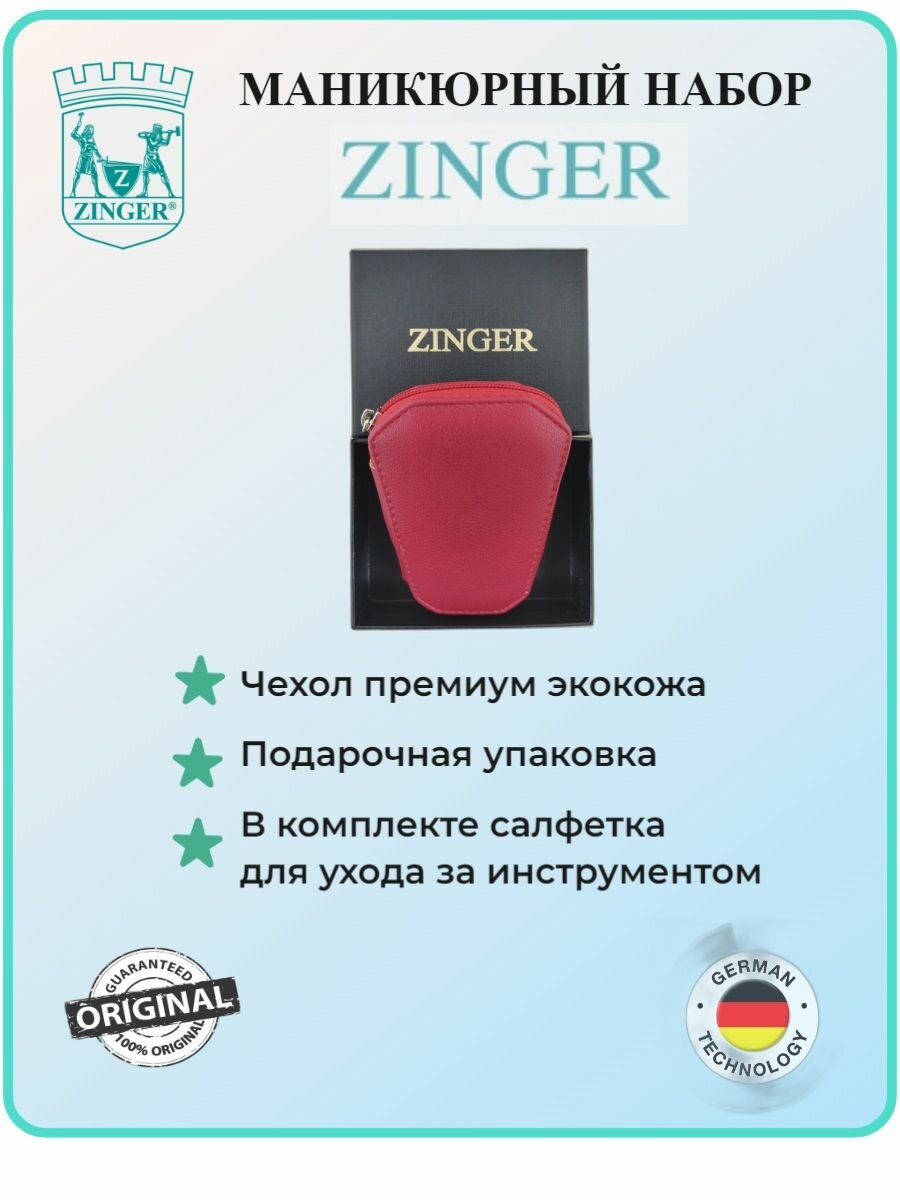 Маникюрный набор на молнии, ZINGER, трапеция, MS-7103, 6 предметов, чехол красный