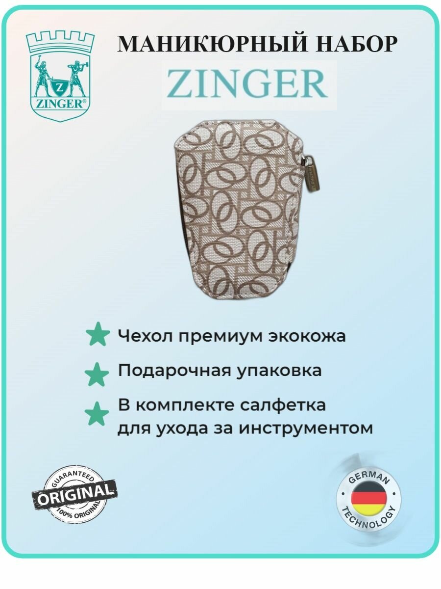 Маникюрный набор, ZINGER, MS-7103, 6 предметов, чехол клетка/овалы, бежевый