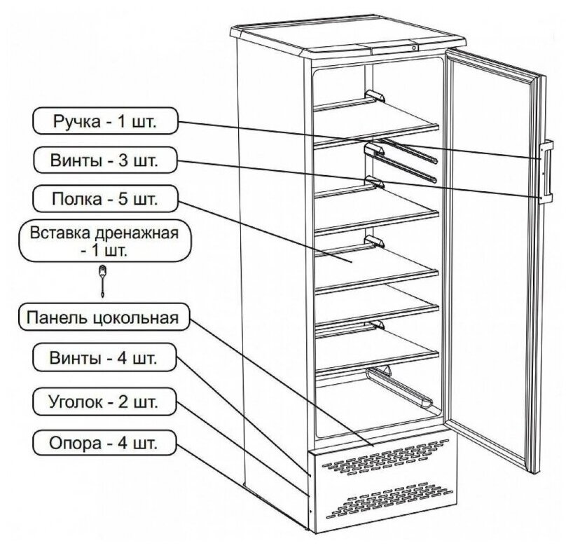 хол-витрина бирюса м310 /серебро, 1,69м, 310л,подсветка/
