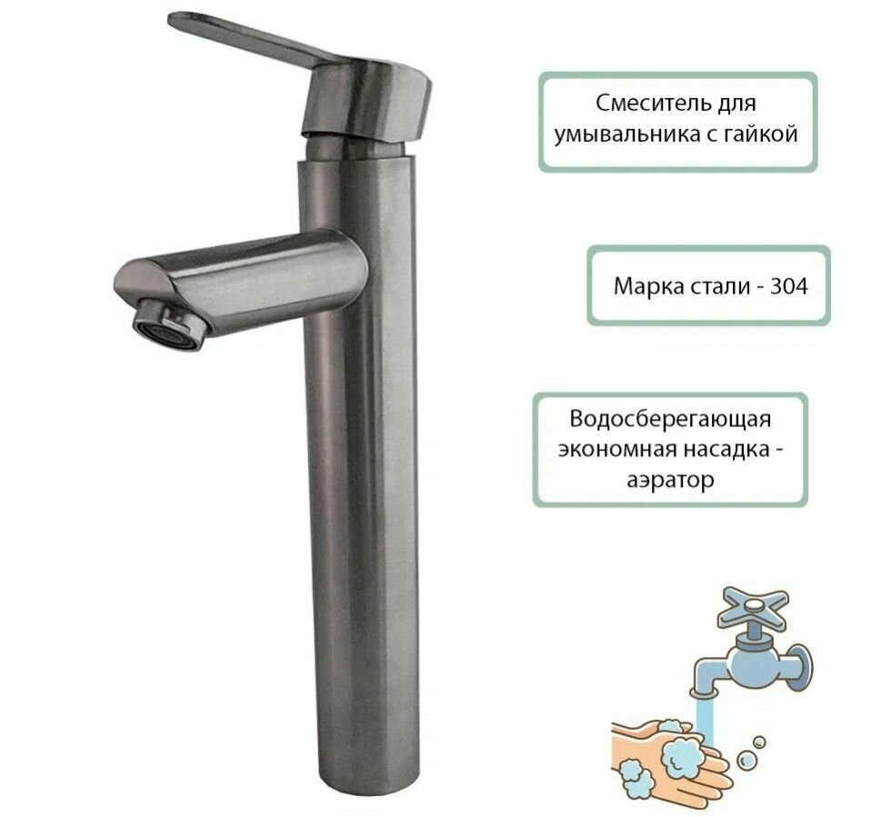 Смеситель раковина высокий на гайке (35) Нержавеющая сталь Accoona A91103 интересное: