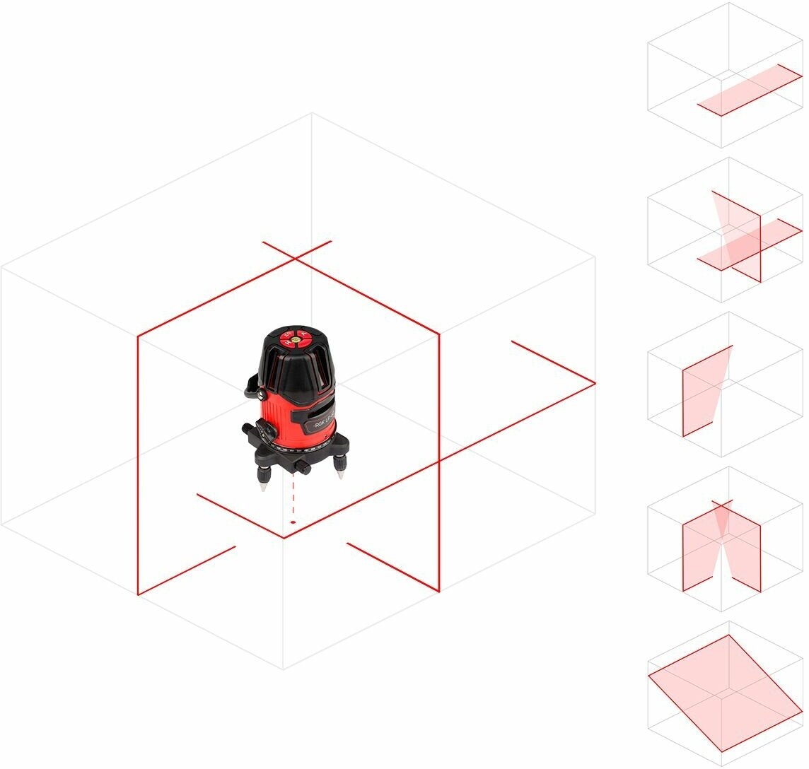 | Плюсы: | Корпус выполнен из крепкого пластика, поворотная платформа и ножки металлические. Все элементы плотно подогнаны. Управление простое, всего 3 кнопками - справится любой неподготовленный человек. За счет поворотной подставки можно обеспечить развертку горизонтали практически на 360. Есть возможность раздельного переключения плоскостей, что экономит заряд батареи. Линия очень тонкая, на расстоянии в 5 метров толщина примерно 2 мм. При хорошем освещении на 15 метрах толщина в пределах 3-4мм. |
