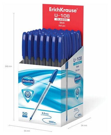 Ручка шариковая ErichKrause® U-108 Classic Stick 1.0, Ultra Glide Technology, синяя (50 шт)