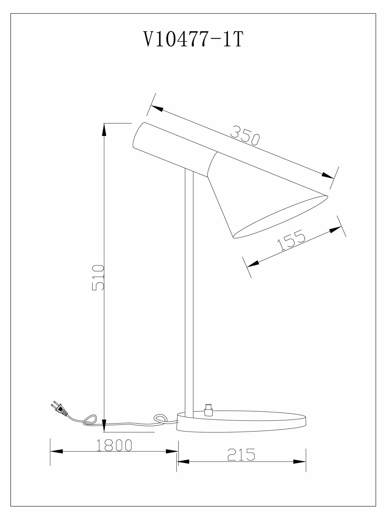 Настольная лампа Moderli Turin V10476-1T, Накаливания, Металл/Черный/Металл/Черный, В спальню, Скандинавский, Конусный