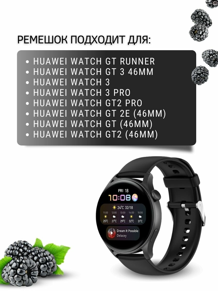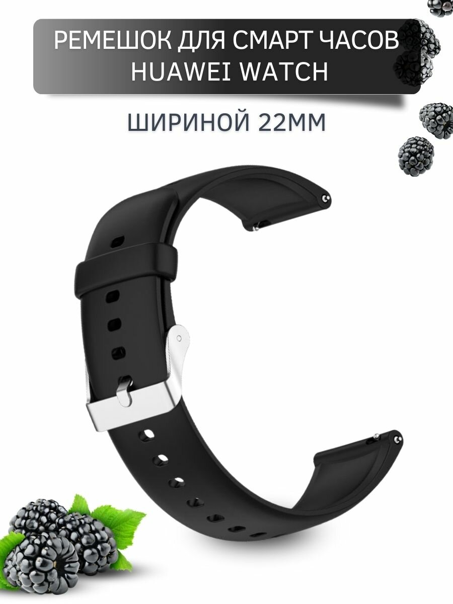 Купить Силиконовый ремешок для Huawei Watch 3 / 3Pro / GT 46mm / GT2 46 mm / GT2 Pro / GT 2E 46mm (серебристая застежка) 22 мм, черный