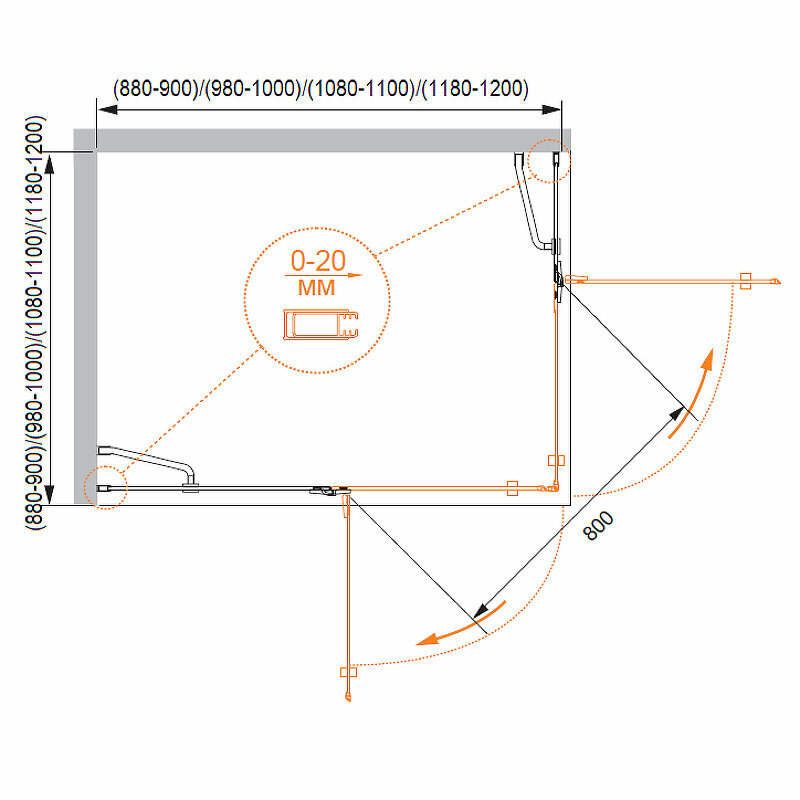 Душевой уголок Black&White Stellar Wind S101 800х800
