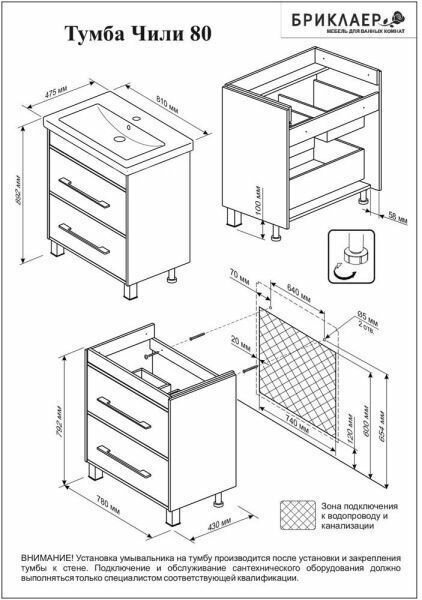 Тумба с раковиной Бриклаер Чили 80 светлая лиственница интересное: