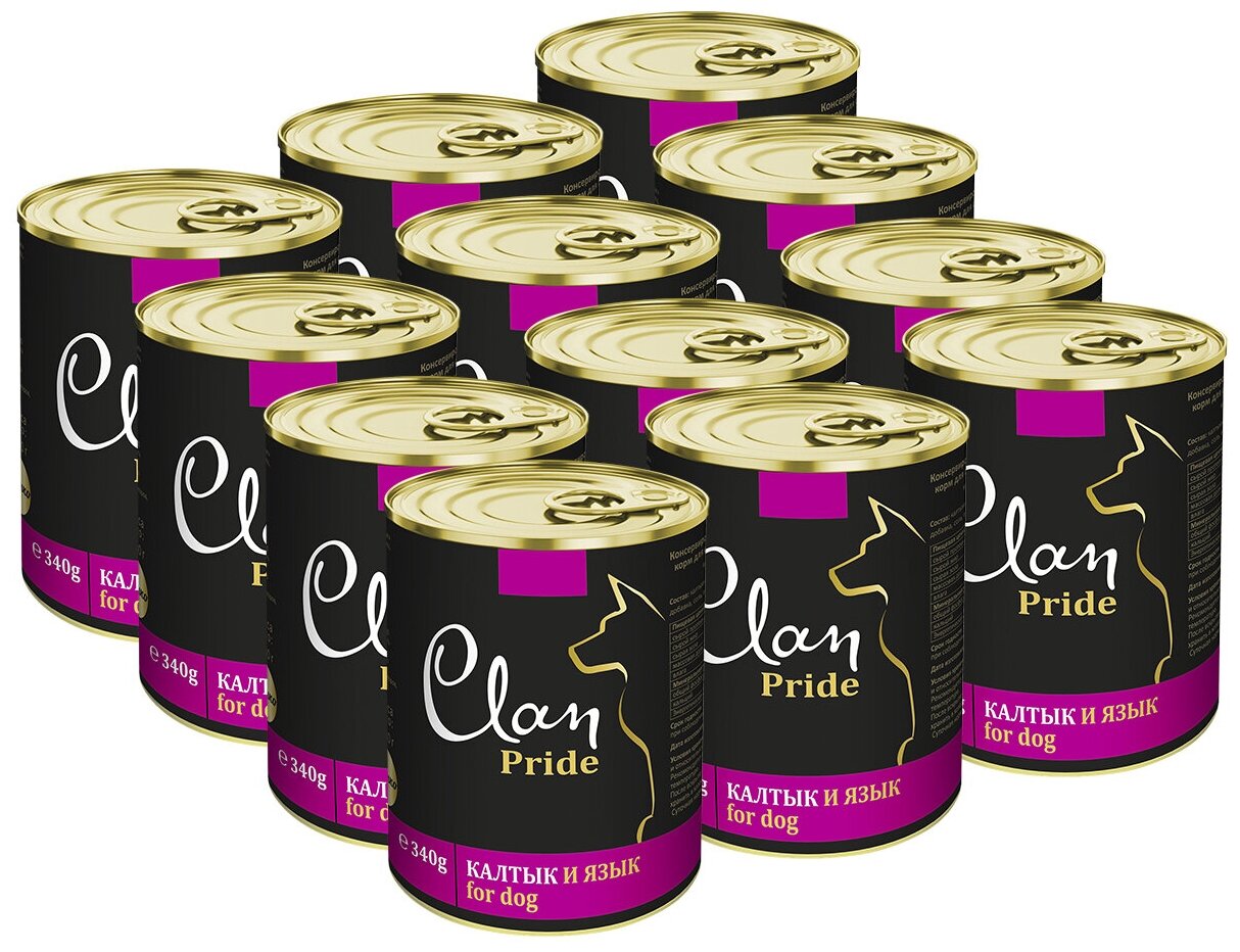CLAN PRIDE консервы для собак 340 г Калтык и язык х 12 шт.