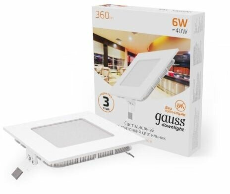 Встраиваемый светильник Gauss ультратонкий квадратный IP20 6W,120х120х22, 105х105, 3000K 360лм 1/20 интересное: