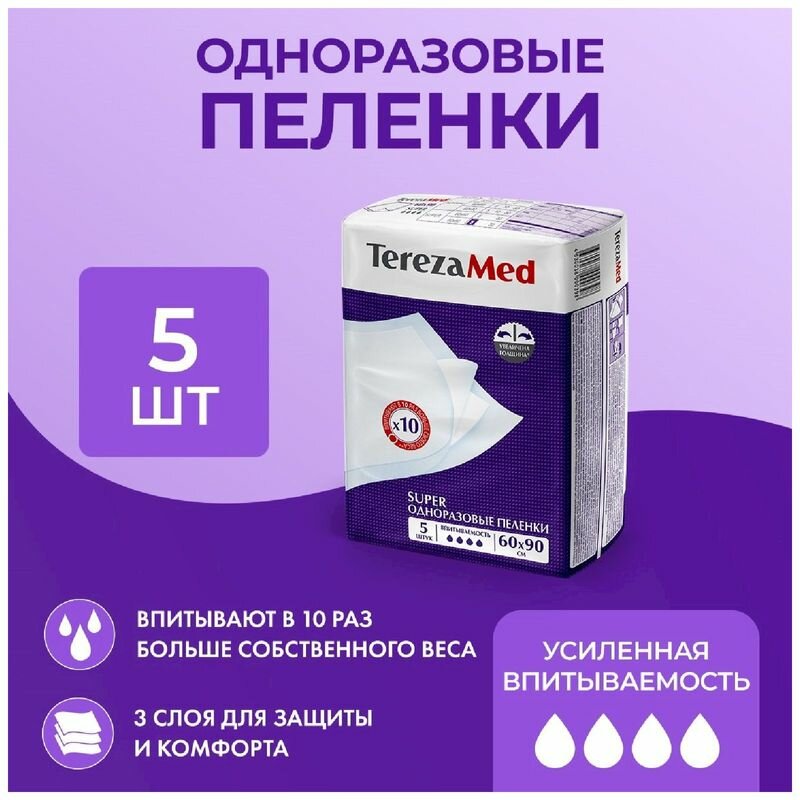 TerezaMed Super / ТерезаМед Супер - пеленки одноразовые, 60x90 см, 5 шт.