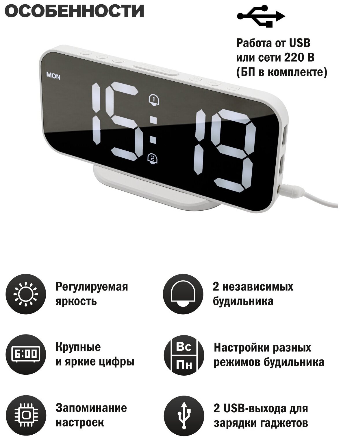 ARTSTYLE CL-21WW Часы электронные, белые, инд. - белый, с будильником интересное: