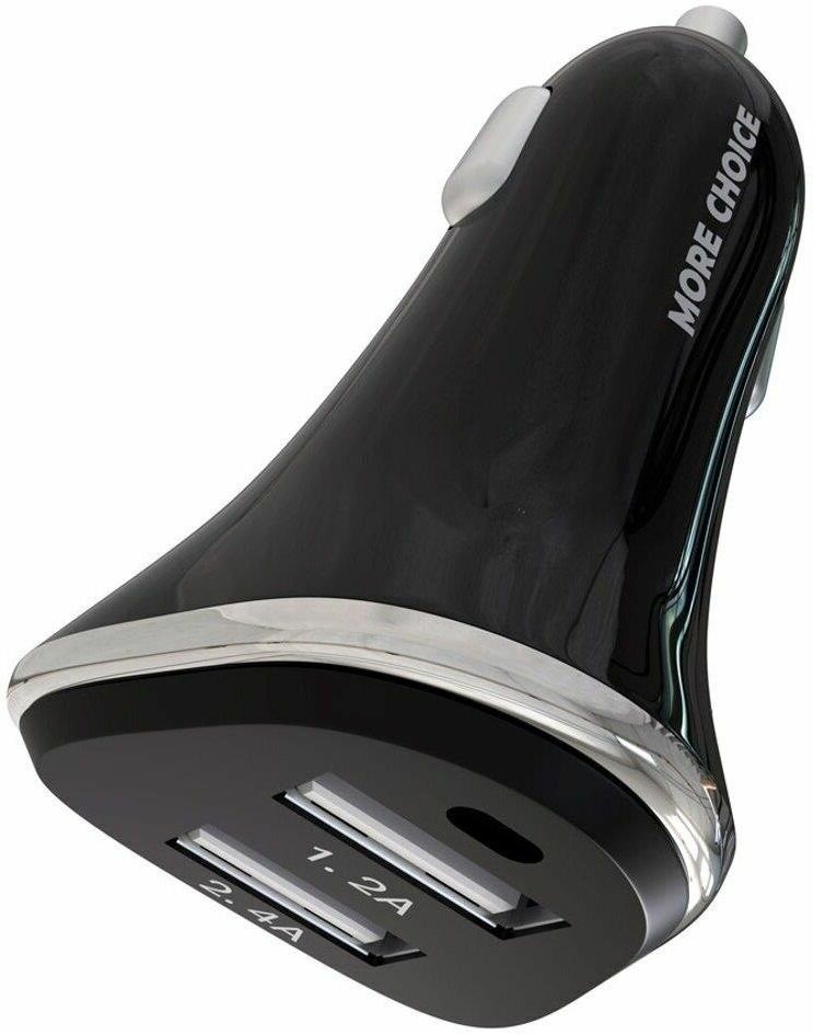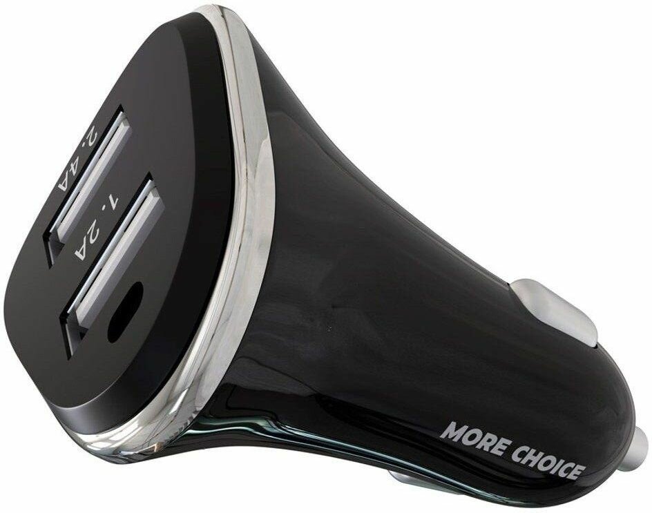 Автомобильное зарядное устройство MORE CHOICE (4627151191416) AC22a 2USB 2.4A для Type-C Black