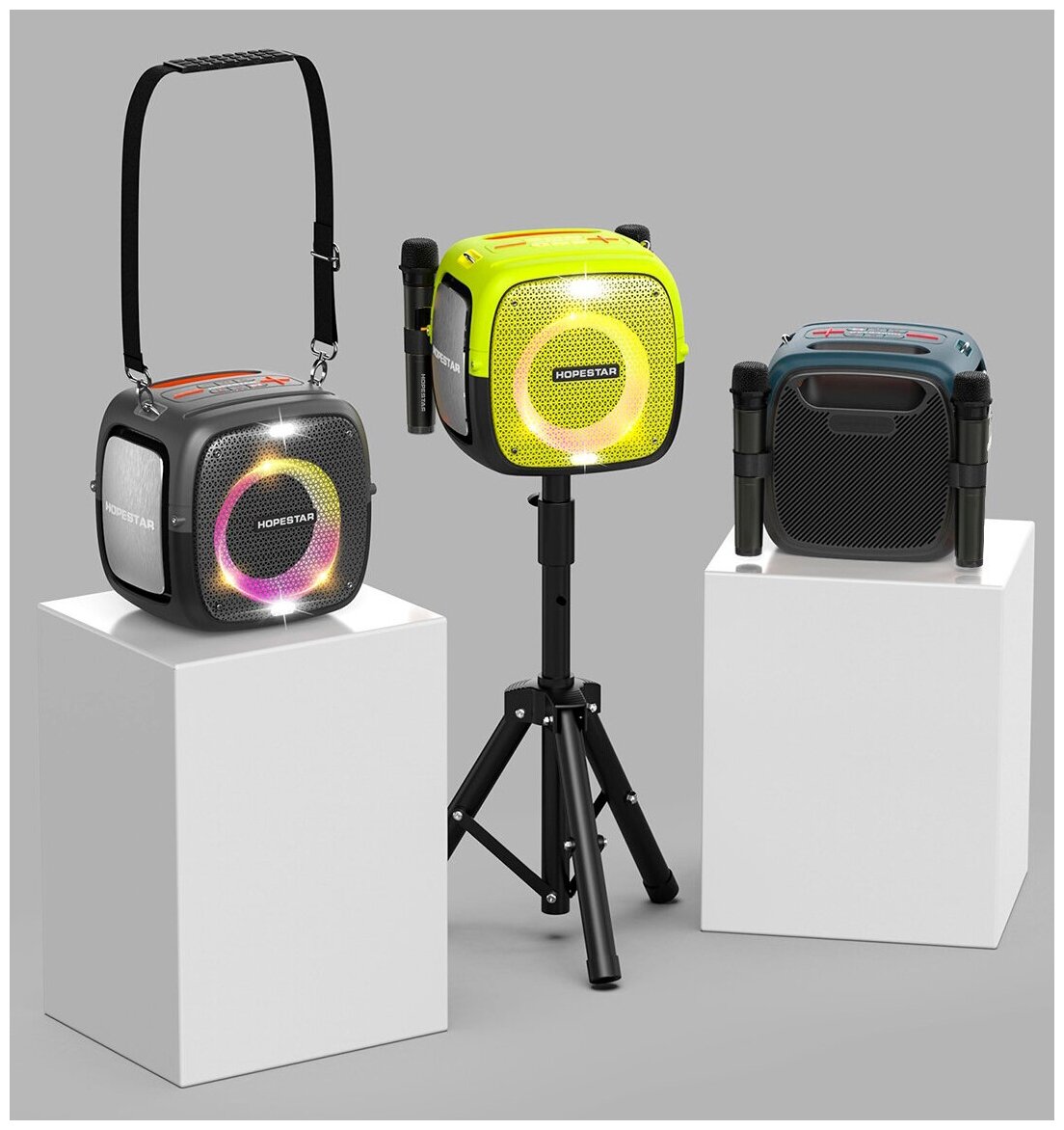 Портативная Колонка Hopestar Party One Black с двумя беспроводными микрофонами, Чёрная