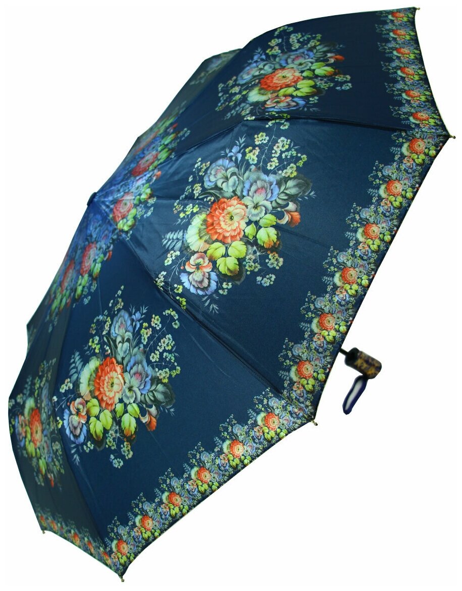 Зонт "Три Слона" женский №310-5, купол D=103 см, 10 спиц, суперавтомат бежево-черный