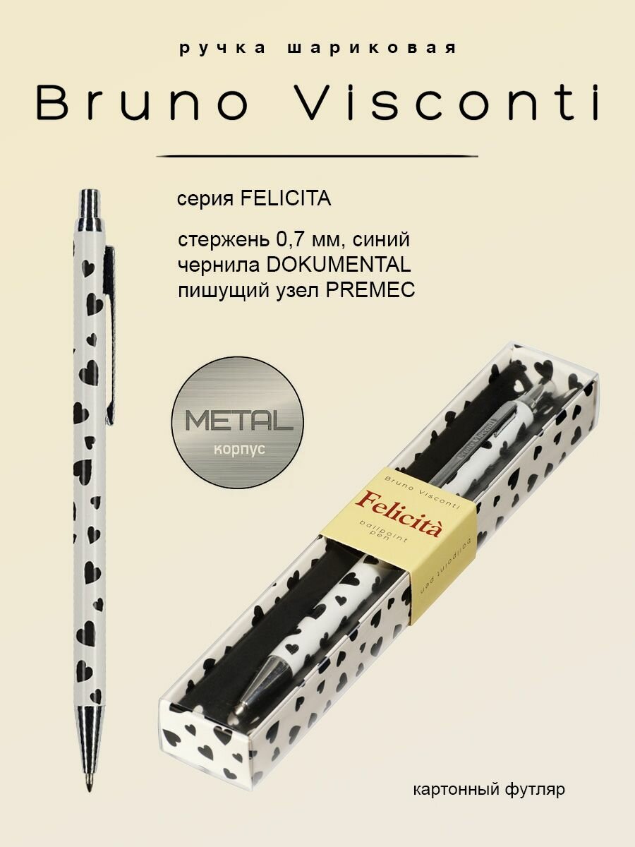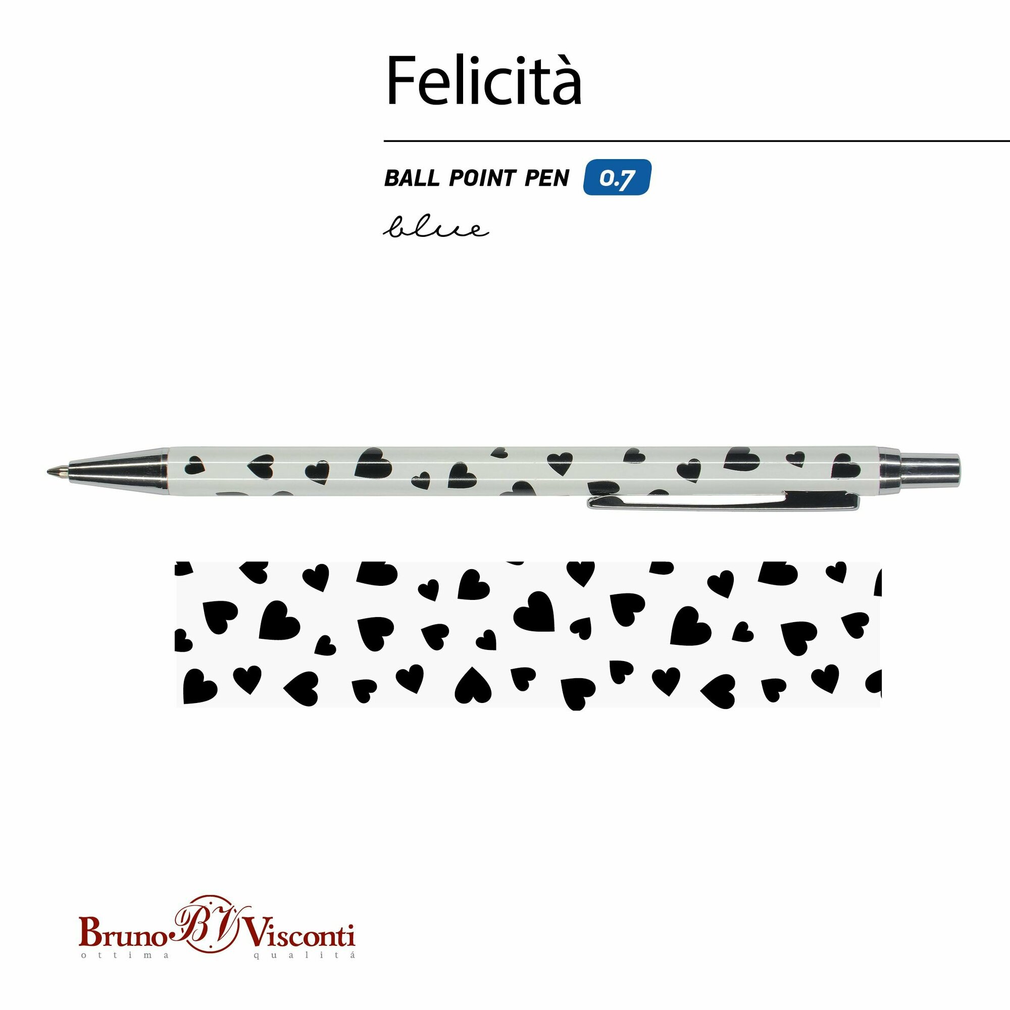 Купить Ручка "Felicita.black&White. Сердечки" Шариковая Металлическая, 0,7 Мм, Синяя