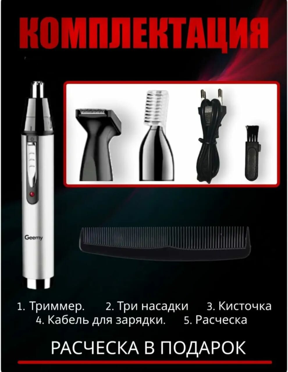 Триммер Geemy GM-3107, серебристый интересное: