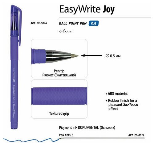 Ручка шариковая BRUNO VISCONTI EasyWrite, синяя, Joy, корпус ассорти, узел 0,5 мм, линия письма 0,3 мм, 20-0044 интересное: