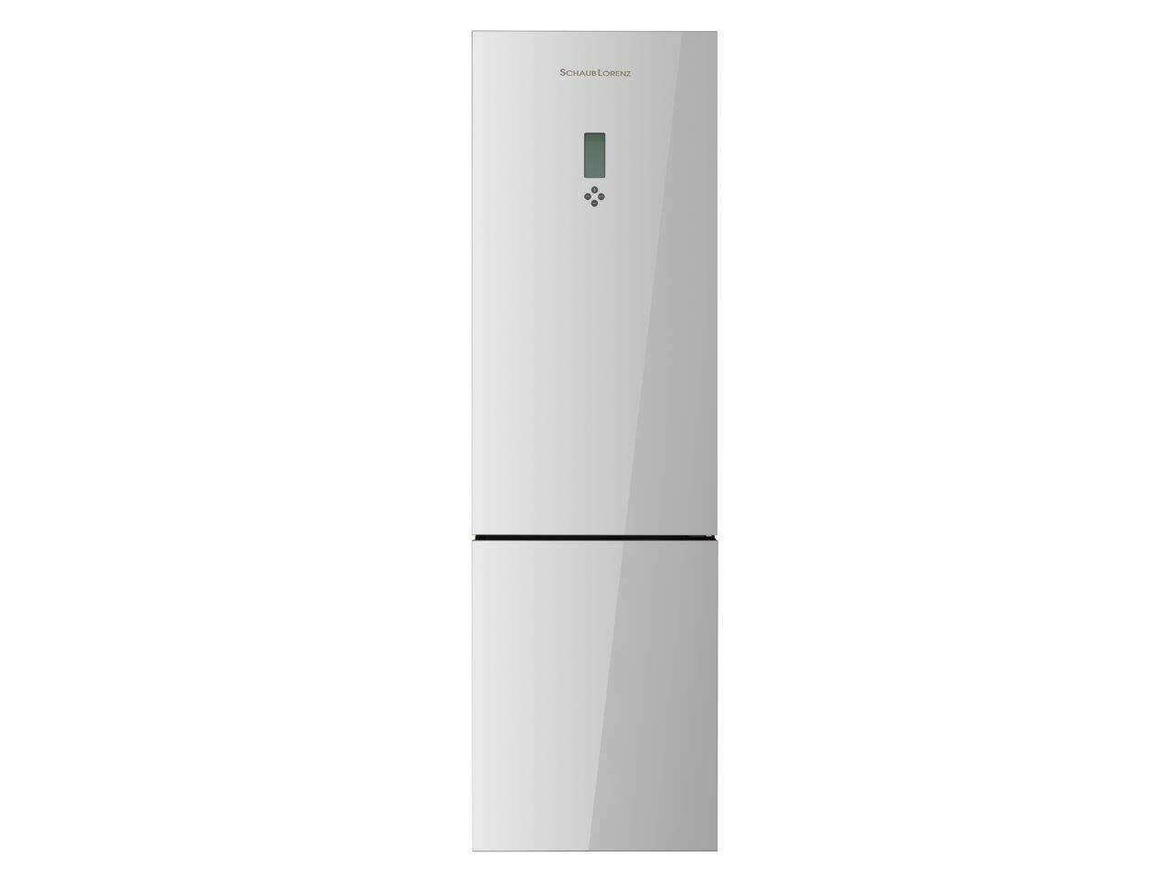 Холодильник Schaub Lorenz SLU S379L4E, белое стекло, двухкамерный, No Frost, зона свежести, ионизация