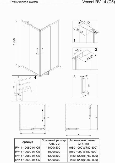 Душевой угол Veconi Rovigo RV-14 100*80*195 (стекло прозрачное 6 мм, профиль черный) интересное: