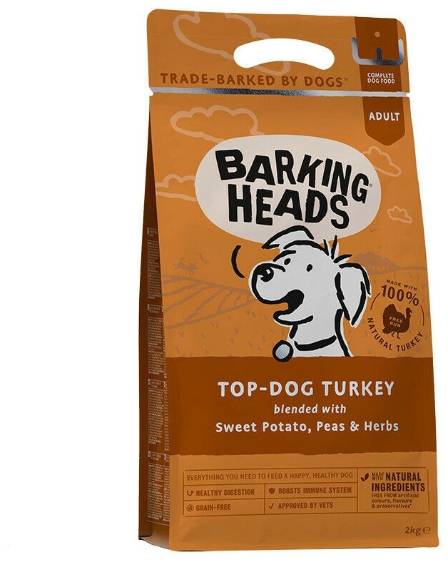Barking (Meowing) Heads Баркинг Хедс "Бесподобная индейка" (Top-Dog Turkey) (2 кг) Сухой беззерновой корм для собак с индейкой и бататом
