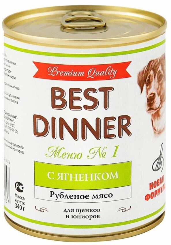 Консервы для собак Best Dinner Premium Меню №1 "С ягненком"щенки, юниоры, 0,34 кг интересное: