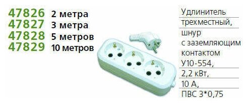 Удлинитель 3х2м с заземл. 10А IP20 У10-554 ПВС 3х0.75 UNIVersal 554-02 ( 1шт. ) интересное: