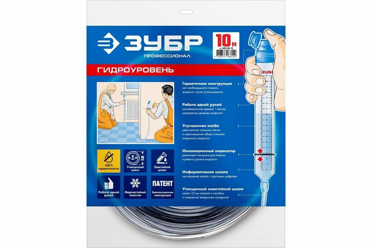 ЗУБР 10 м,d 8 мм, гидроуровень, Профессионал (3482-08-10)