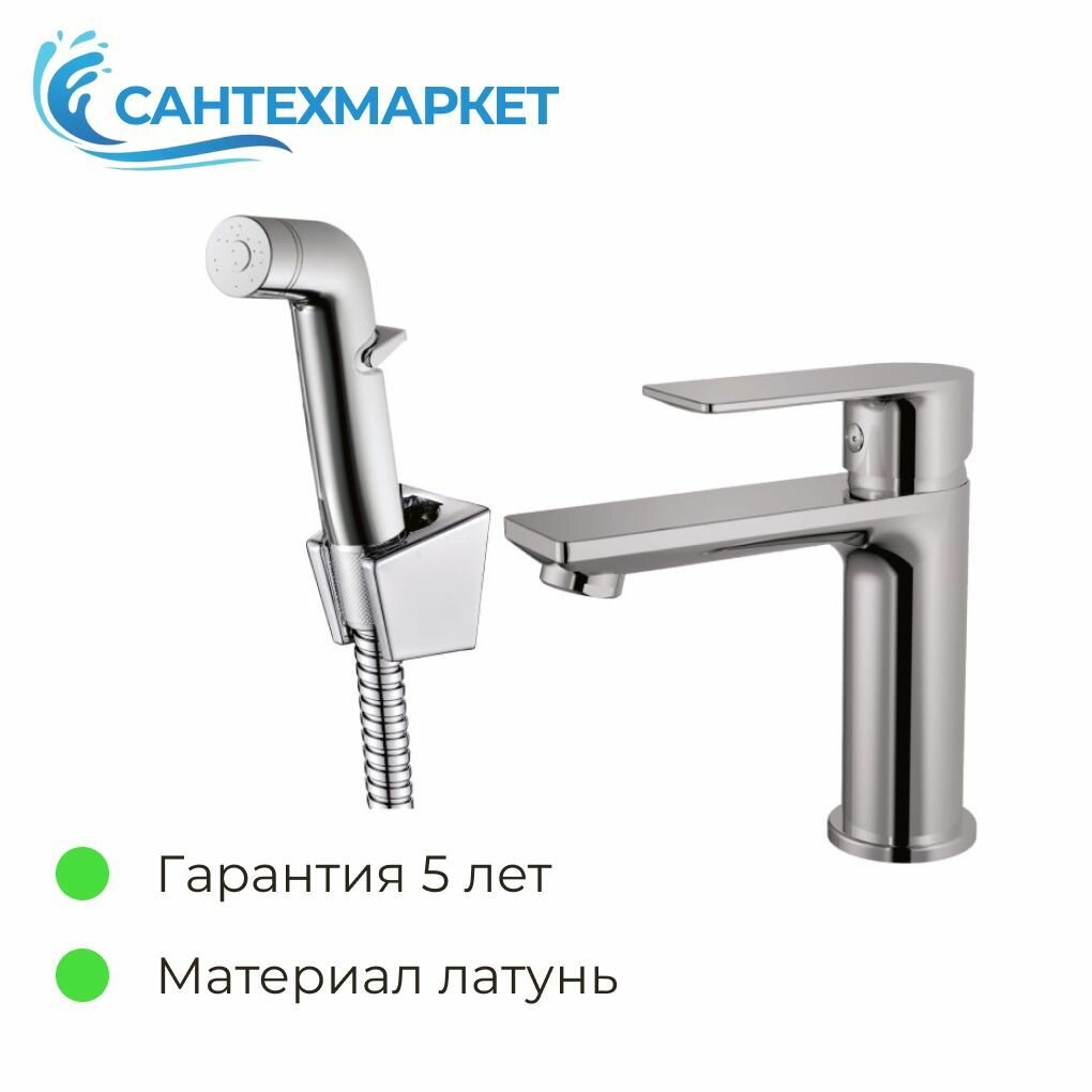Смеситель для раковины с гигиеническим душем Haiba HB12505, хром