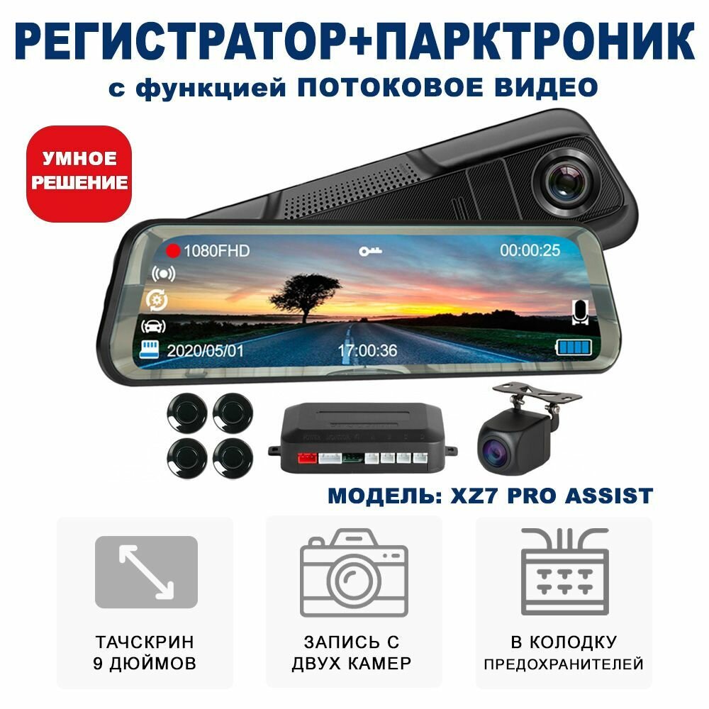 Купить Видеорегистратор автомобильный зеркало с парктроником и двумя камерами / Видеорегистратор с камерой заднего вида Blackview xz7 ASSIST PRO черный