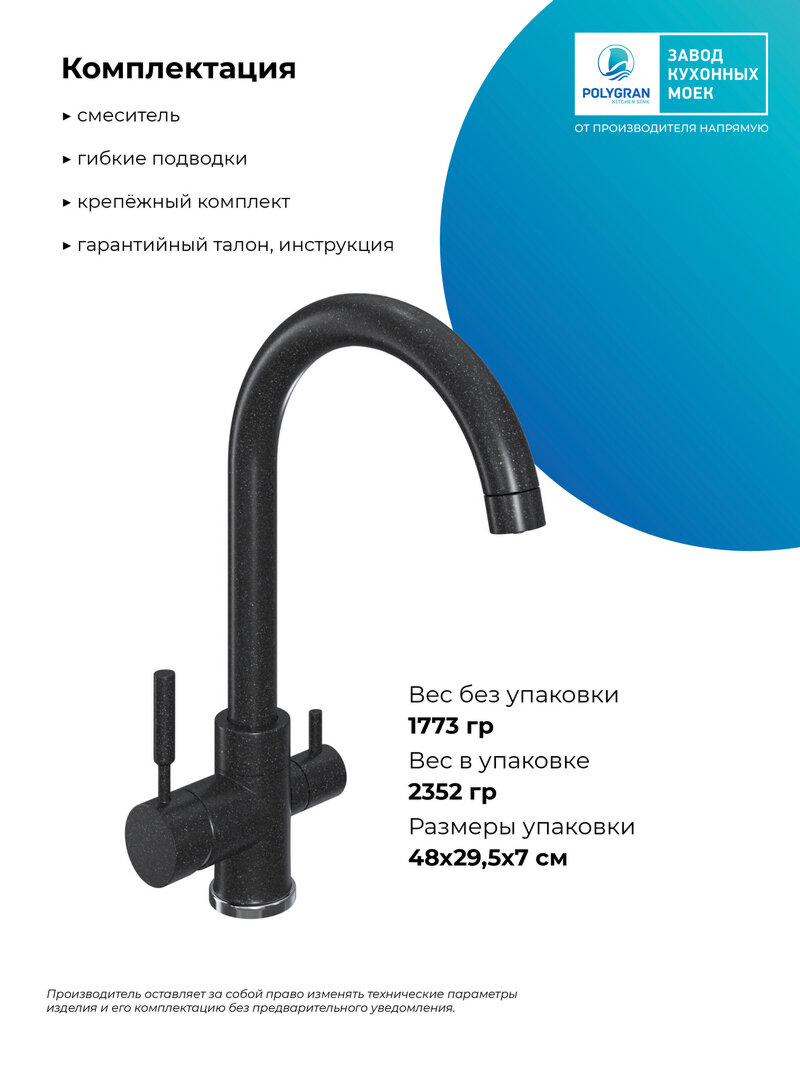 Смеситель для кухни Polygran Элара Дуо под фильтр, №16 черный (627666)