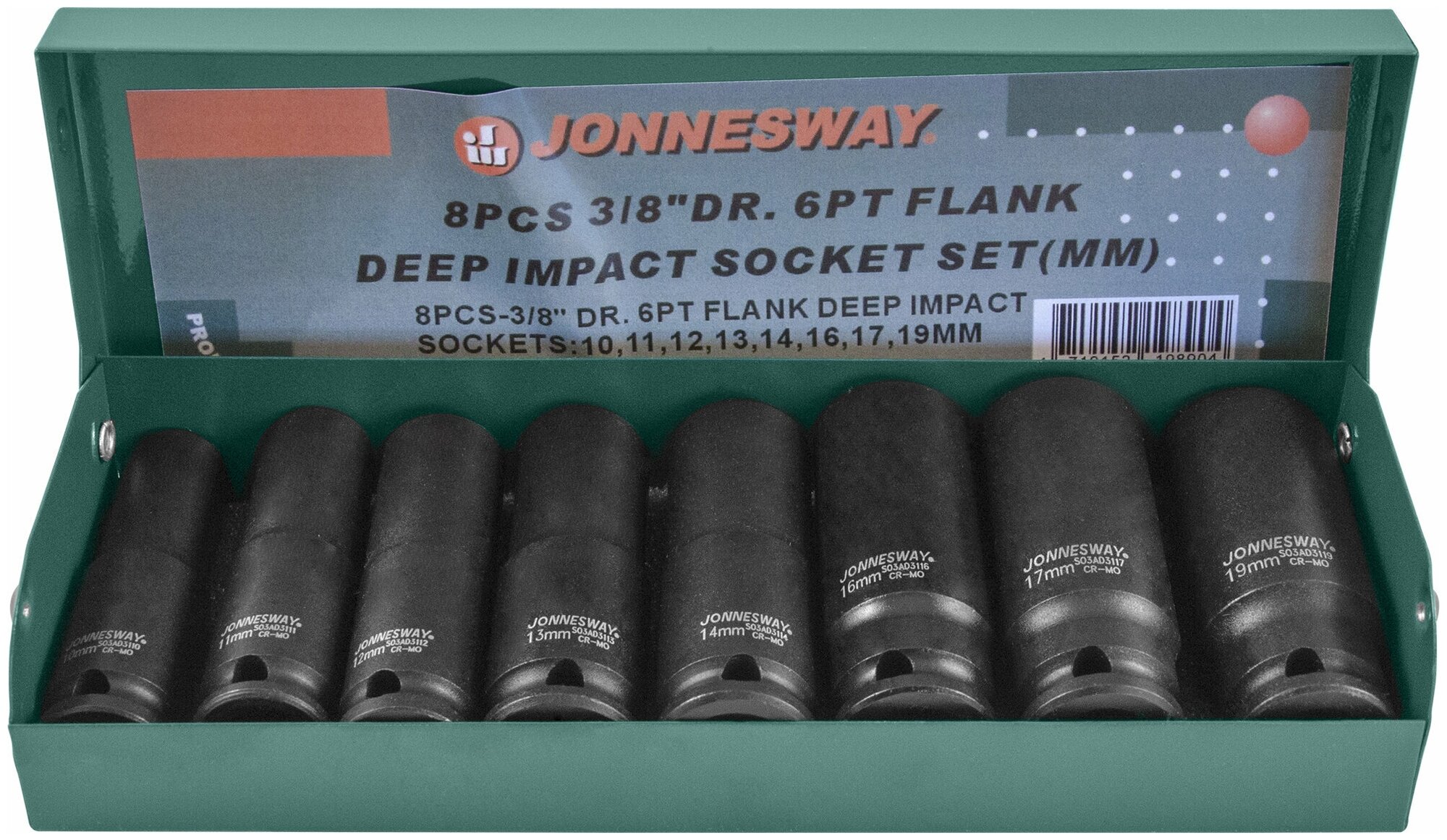 Набор головок торцевых ударных глубоких 3/8"DR, 10-19 мм, 8 предметов, Jonnesway S03AD3108S