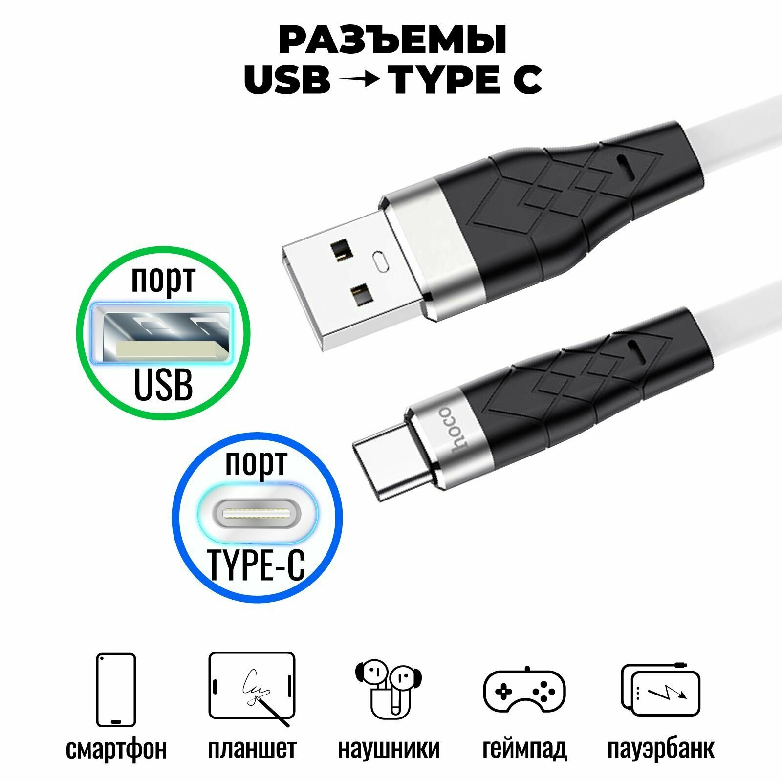 Usb Кабель-зарядка Type-C Hoco X53 Angel silicone 3A 1м плоский силиконовый белый интересное: