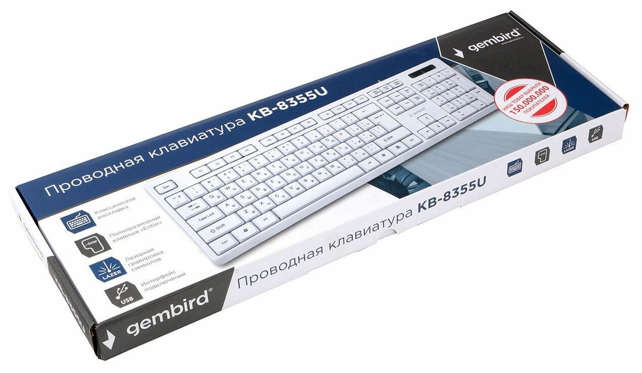 Клавиатура Gembird KB-8355U, USB, белый, лазерная гравировка символов, кабель 1,85м
