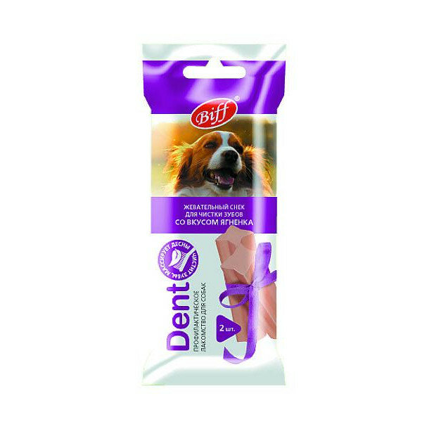 Biff 0,05кг Dent снек для чистки зубов 1уп(2 шт) со вкусом ягненка для собак средних пород
