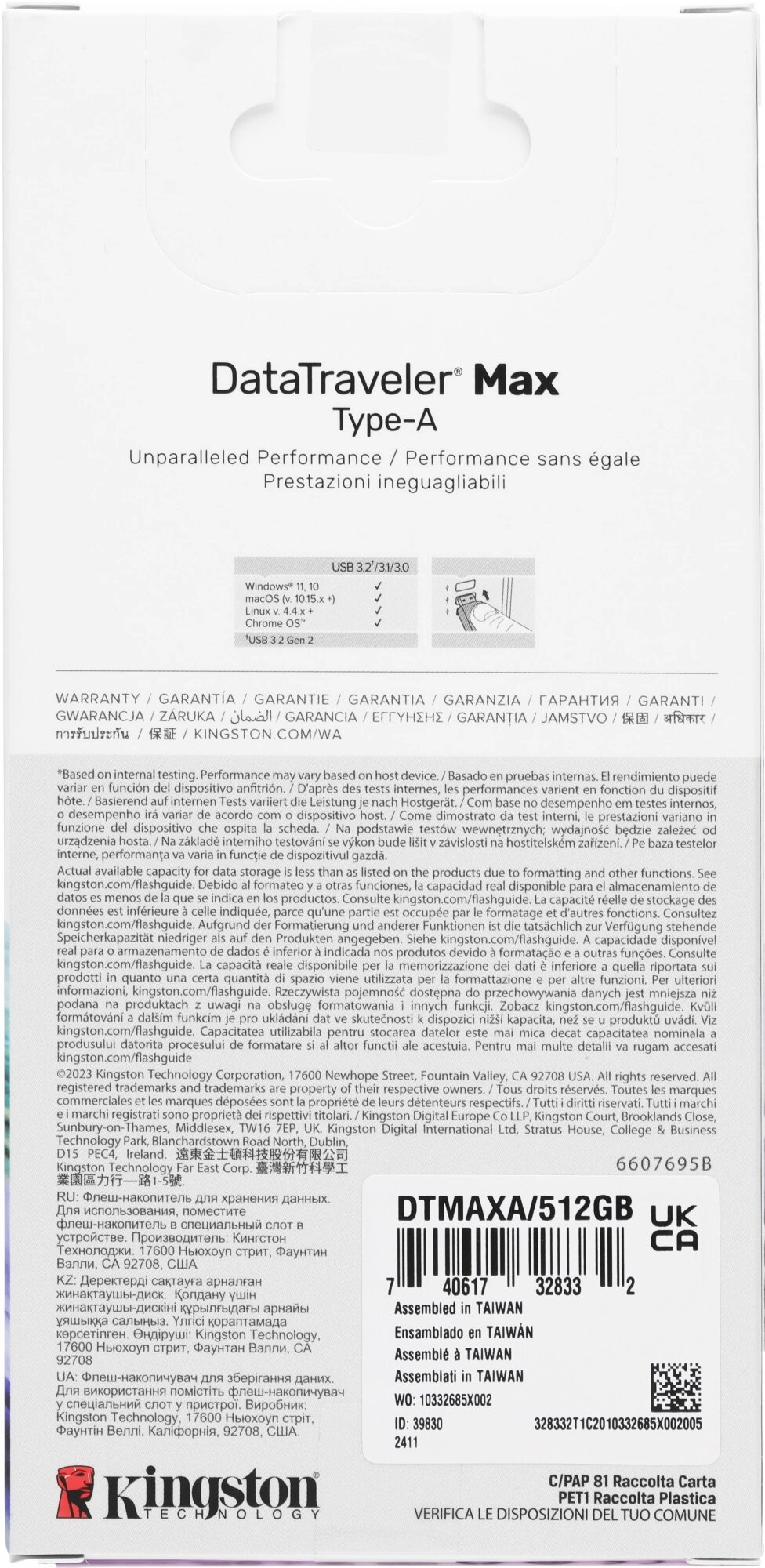 512Gb Kingston Dtmax/512gb USB Type-C 3.2 Gen 2 (1000/900 Mb/s) Dtmax/512gb