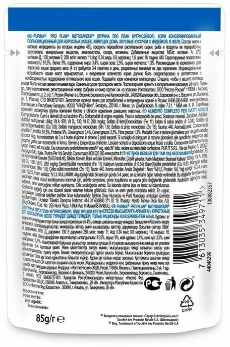СохранитьКорм для кошек PRO PLAN Adult, с индейкой в желе пауч 85г (упаковка - 26 шт) интересное: