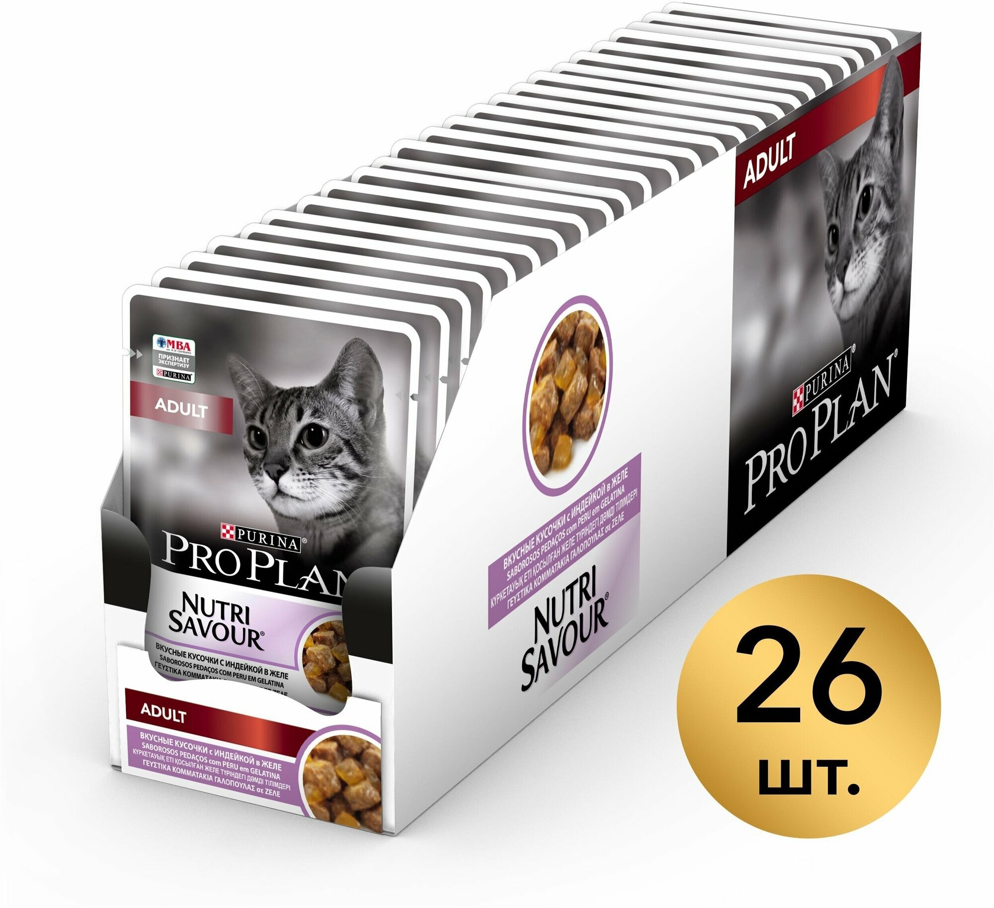 Влажный корм Pro Plan® Adult Nutri Savour® для взрослых кошек, кусочки с индейкой в желе, 26 шт. по 85 г