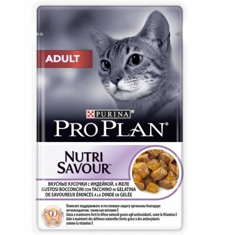 Pro Plan Nutrisavour Adult пауч для взрослых кошек (кусочки в желе) Индейка, 85 г. упаковка 26 шт