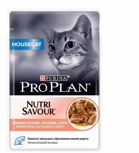 Корм для кошек PRO PLAN Housecat для домашних, с лососем в соусе пауч 85г (упаковка - 26 шт)
