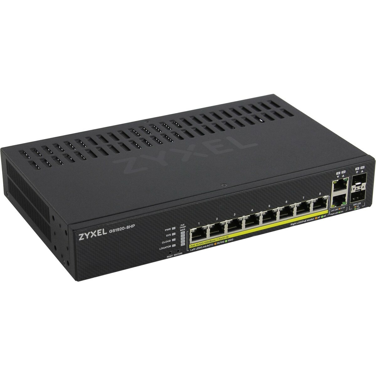 ZYXEL Сетевое оборудование GS1920-8HPV2-EU0101F Гибридный Smart PoE+ коммутатор NebulaFlex GS1920-8HPv2, 8xGE PoE+, 2xCombo SFP RJ-45 , бесшумный,