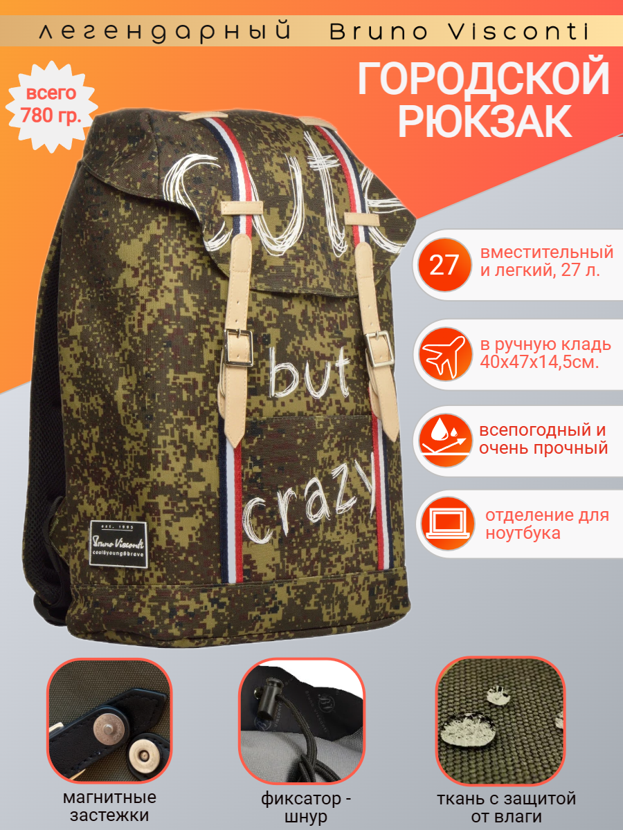 Рюкзак BrunoVisconti, городской, камуфляж , «CRAZY», Арт. 12-011-006/10