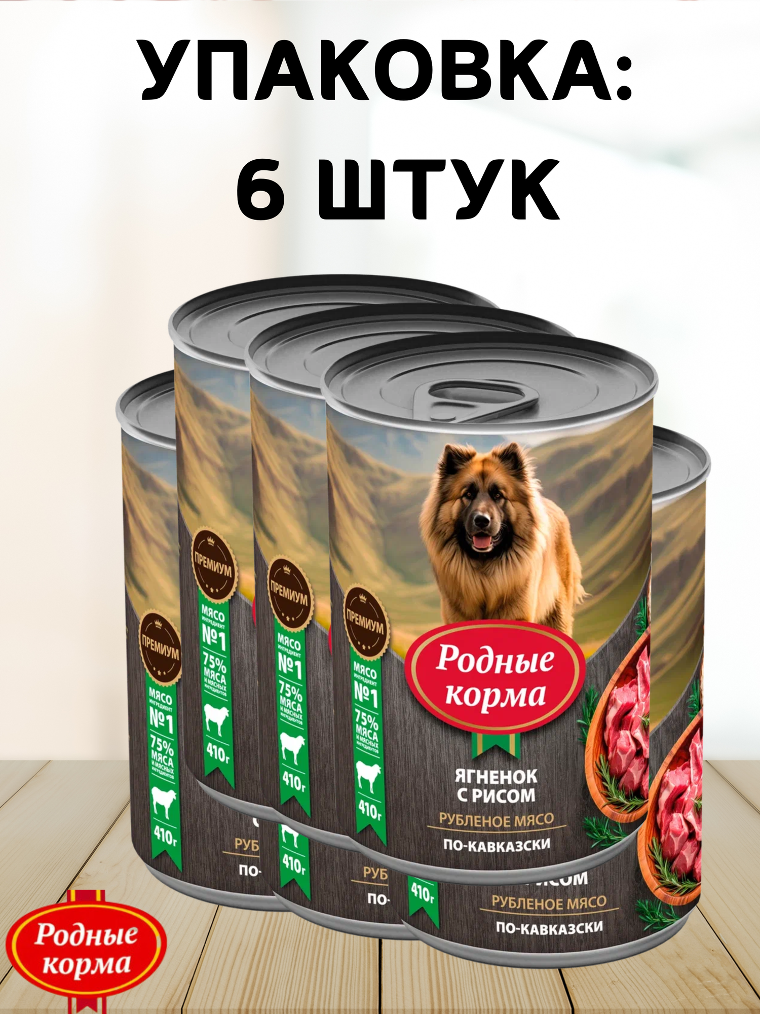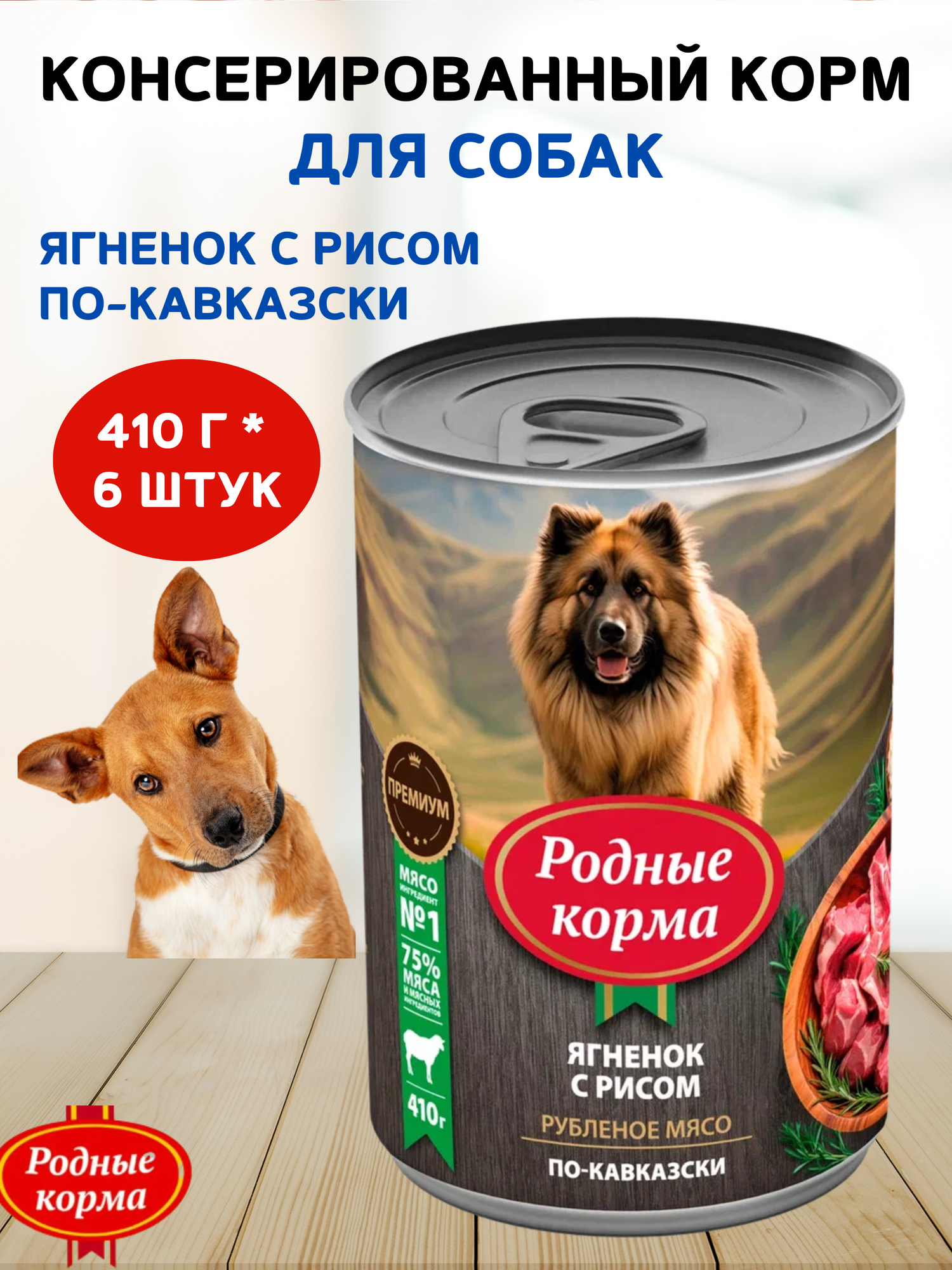 Родные Корма Консервы для собак ягненок с рисом по-кавказски,410 г,6 шт