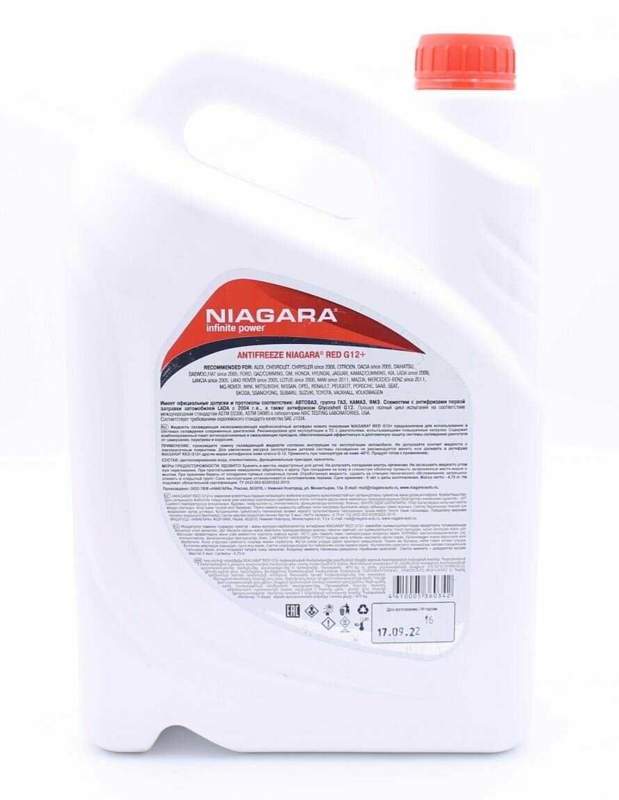Антифриз Niagara G12+ карбоксилатный (красный) 10 кг интересное: