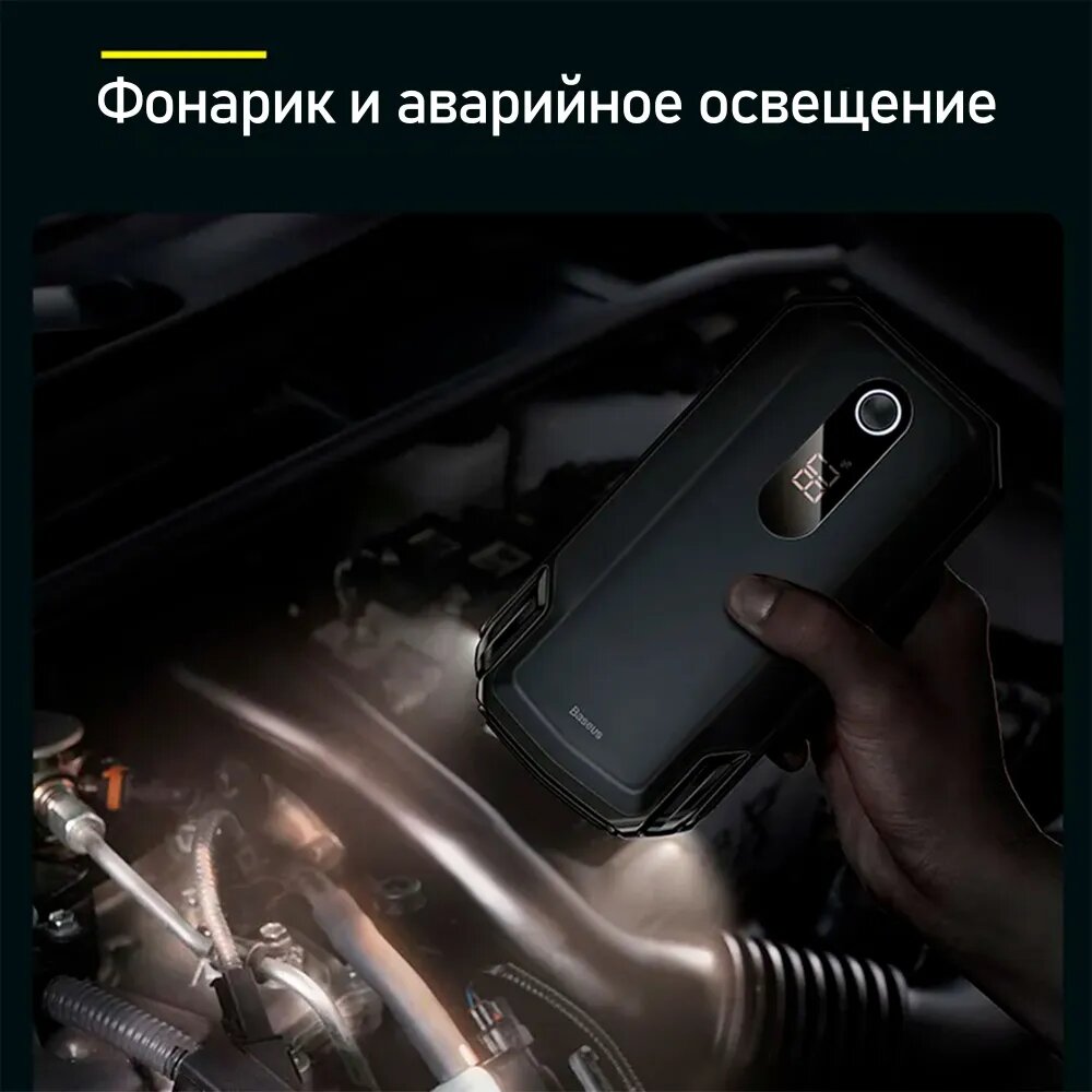 Пусковое зарядное устройство Baseus Super Energy Car Jump Starter PRO + Внешний аккумулятор 12000 мАч + LED фонарь, черный, CRJS03-01