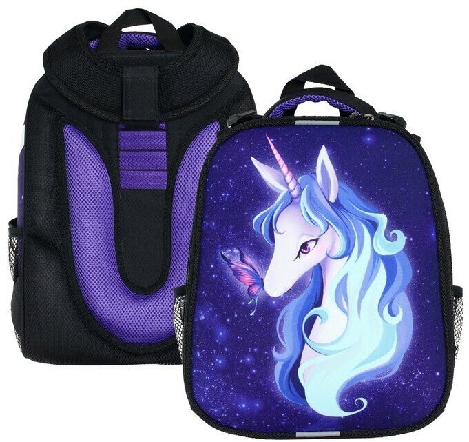 Рюкзак каркасный Probag "Единорог" 38 х 30 х 16 см, эргономичная спинка, фиолетовый