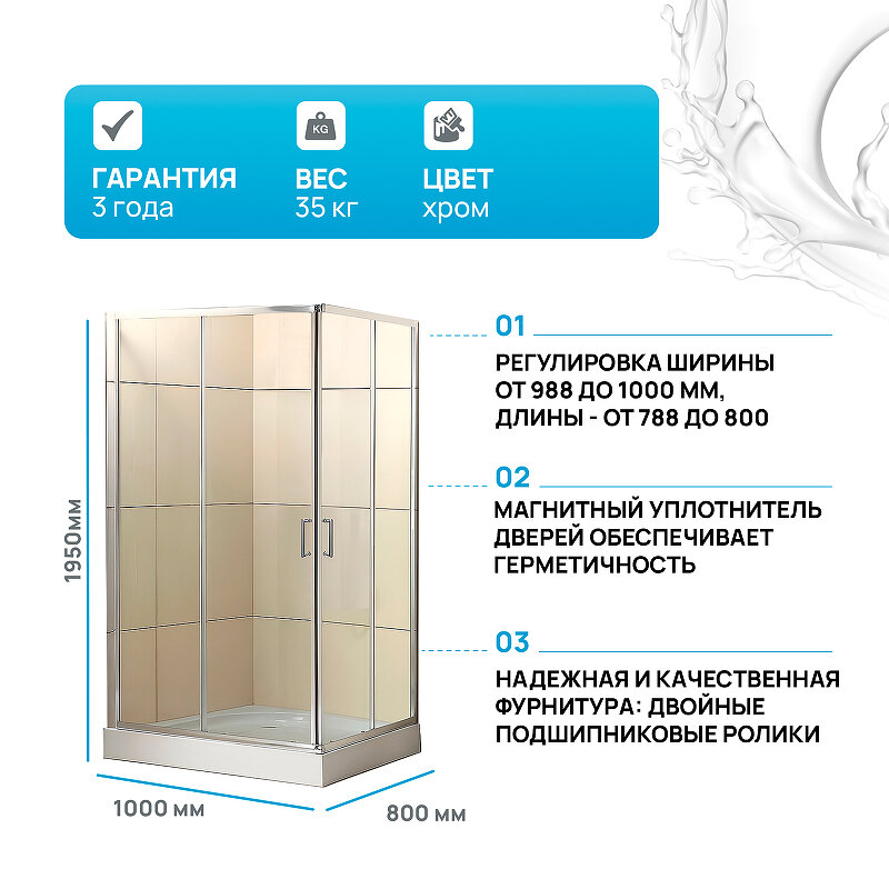 Душевой уголок BelBagno UNO 1950x1000x800 хром UNO-195-AH-2-100/80-C-Cr интересное: