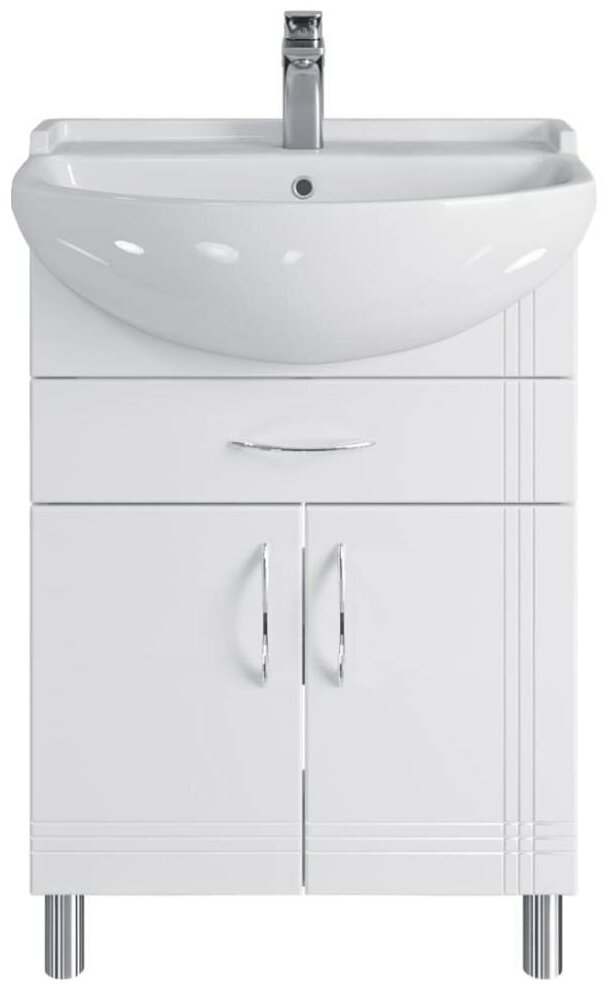 Тумба напольная SanStar Вольга 60 с раковиной Амур 60 (комплект) для ванной комнаты, белая