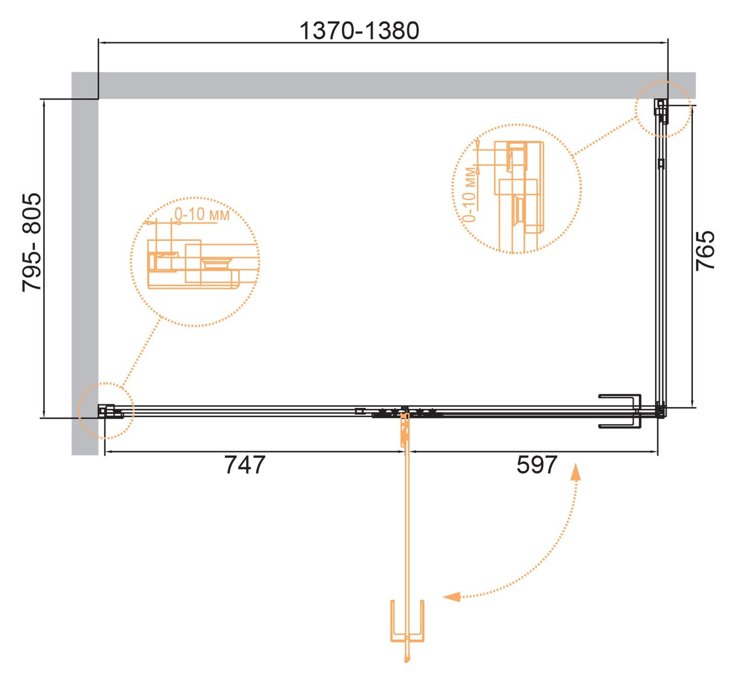 Душевой уголок Cezares BELLAGIO-AH-1-140/80-C-NERO 140x80
