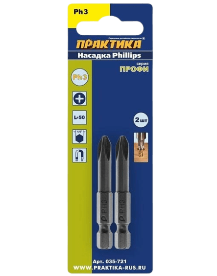 Бита "Профи" PH-3 х 50мм(2шт), блистер ПРАКТИКА 035-721 интересное:
