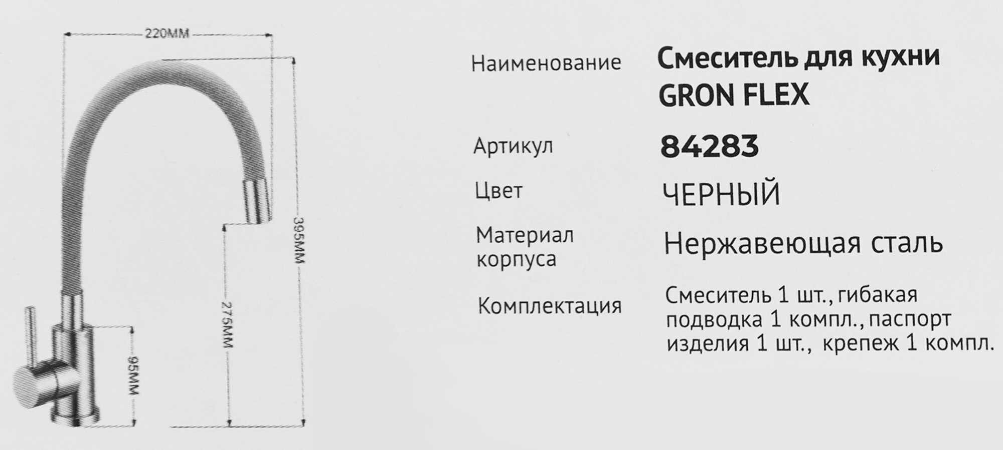 Смеситель для кухни Osgard Gron Flex цвет чёрный 84283 интересное:
